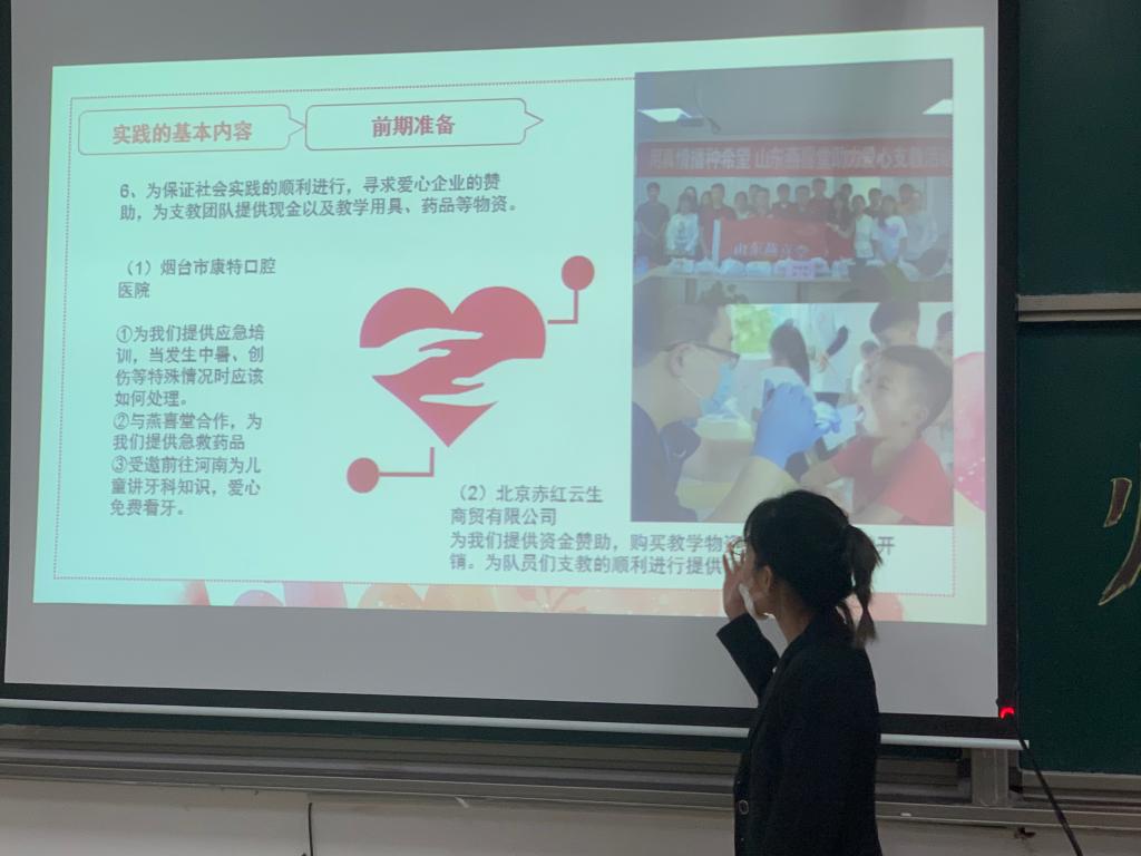 此次答辩共有45支实践团队参加,各团队按照抽签顺序进行答辩,分别从实践主题、实践内容、实践成果等几方面展示自身团队特色。各团队实践主题丰富多样,充分结合国家政策与专业特色,围绕助学支教、红色精神传承、新时代乡村振兴等一系列特色主题开展实践活动,其中,“青春心向党”与“太阳花”“军功章”等实践队,远赴红色革命地,从探访老党员,追寻党员足迹出发,追寻党员足迹,传承红色记忆,感悟老兵情怀。“琴心支教队”实践队切实关心农村教育,在河南商丘小学开展助学支教活动,并在支教期间开设爱国教育、法律普及、科学教育等多门课程,并为学校捐赠184册图书、1400本笔记本,通过多种方式为当地孩子送去温暖。“弘法沧澜”实践队,积极响应国家乡村振兴战略,通过线上线下相结合的方式进行法律宣讲,积极推进我国法治建设。“言传”实践队深入沂蒙,对当地销售模式和特产进行了深入了解,详细介绍了当地产业的发展现状,并充当电商主播带货当地特产,助力蒙阴发展。“只争朝夕”和“野孩子”实践队以环境保护为重点,以“绿水青山就是金山银山”为活动宗旨,积极调研,为推动人与自然和谐发展贡献一份微薄的力量。