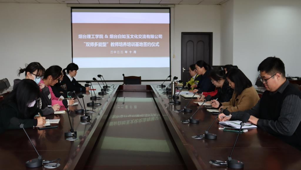 10月26日,我校外国语学院与烟台白如玉文化交流有限公司举行“双师多能型”教师培养培训基地签约仪式,院长刘白玉、常务副院长于巧丽、党总支副书记赵蓓、烟台白如玉文化交流有限公司副总经理孙明玉女士、院长助理张丽、专业负责人殷莉及各专业系主任参加了此次签约仪式,签约仪式由张丽主持。