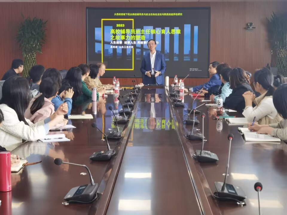 为全面推进师德师风建设,提高辅导员和班主任的职业能力素养,增强教师课程思政能力,提升协同育人水平。5月10日下午,经济管理学院特邀山东工商学院吴现波老师来校作题为《高校辅导员班主任核心育人思维之故事力的塑造》专题讲座。经济管理学院领导、老师积极参加。讲座由学院党总支书记高照龙主持。