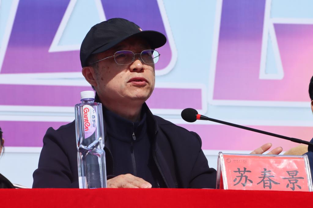 副校长苏春景在致辞中向全体运动员、教练员、裁判员和大会工作人员表示诚挚的问候,预祝本届运动会顺利举办。他指出,学校始终坚持“人人享有体育”的教育理念,全面推进素质教育,倡导“健康第一”的现代健康观念。希望全体师生感受运动的乐趣和魅力,养成体育锻炼的良好习惯,以体育建设促进校园文化建设,继以奋发有为的精神推动学校各项事业高质量发展。