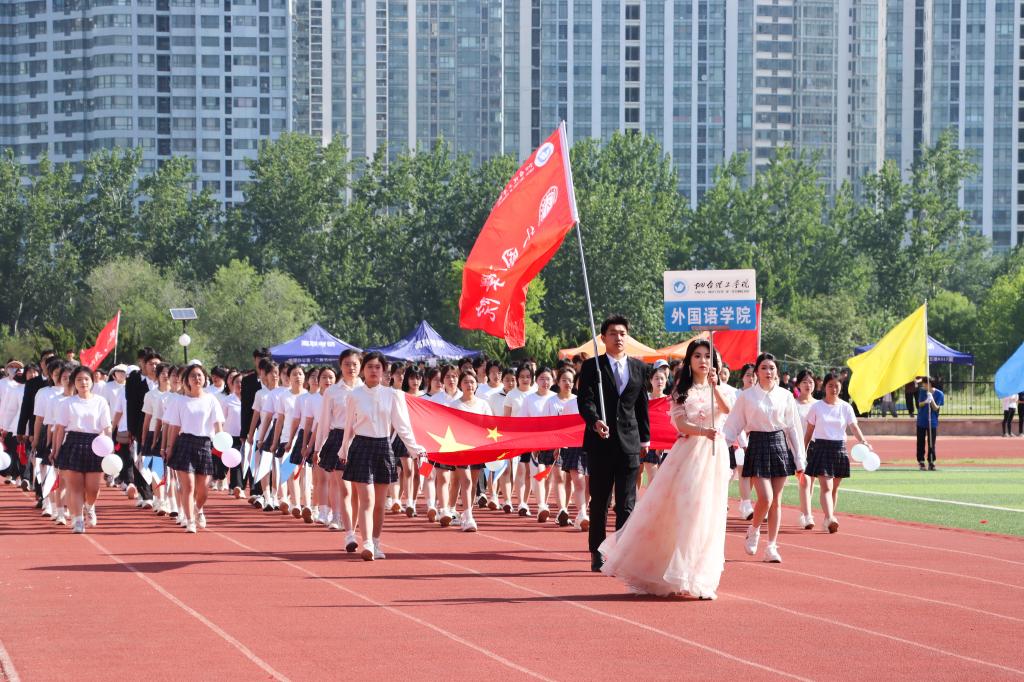 随着激昂的鼓乐声,国旗护卫队带领各方队以饱满的精神,整齐的步伐依次通过主席台。现场气氛热烈,别出心裁的展板、铿锵有力的口号、迎风招展的彩旗……,无不展示着师生们健康自信、昂扬向上的精神风貌。