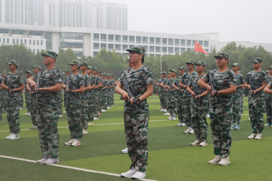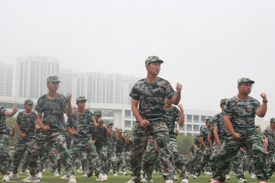 大会在庄严的国歌声中拉开帷幕。五星红旗冉冉升起,声声国歌高亢嘹亮。各学院方阵步履铿锵,昂首阔步,彰显了烟理工新生不屈不挠的坚毅精神。刺杀操方阵出枪刚劲,威震八方,挺直的腰板,敏捷的身姿,一招一式尽显烟理工学子的力量与勇敢;军体拳方阵动作整齐划一、干净利落,挥拳时拳风呼啸,带着勇往直前的气势,展现出烟理工学子的自信与豪迈;匕首操方阵刀起飒爽,刀落坚定,动作有力又不失柔美,刚劲并存,变换如行云流水,传递出烟理工学子巾帼不让须眉的英雄气势。