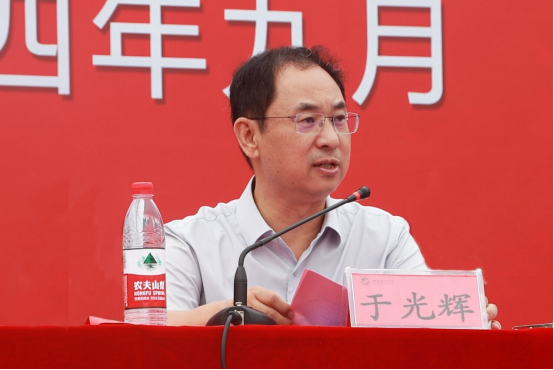 校长于光辉作军训总结讲话。他表示,同学们用挺拔庄严的军姿、整齐划一的动作、铿锵有力的步伐展示了本次军训的成果,彰显了烟理工学子良好的精神风貌!希望同学们永葆青春向党的赤子之心,将军人的优良品格内化于心、外化于行,秉承“自强、博识、求新、致道”的校训精神,敢想敢为,以昂扬的姿态在烟理工留下奋斗的足迹,谱写自己的青春故事。