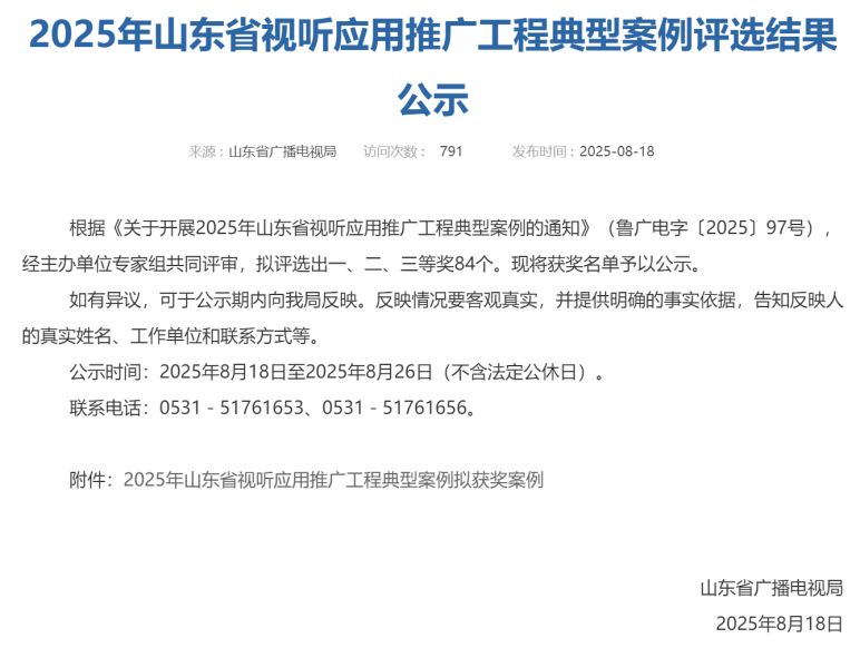山东省广播电视局公示了《2025年山东省视听应用推广工程典型案例》评选结果。由人工智能学院刘旺老师主持申报的“心理状态综合评估系统”案例,在“视听+医疗健康”应用方向脱颖而出,荣获三等奖。这一荣誉充分展示了人工智能学院在人工智能跨学科应用研究与创新实践方面取得的显著成效。