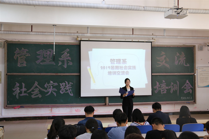 为进一步做好2019年暑期社会实践工作,加强大学生对社会实践的了解,5月29日,管理系于一教101教室举办2019年暑期社会实践交流培训会,管理系各社会实践队伍参加会议。