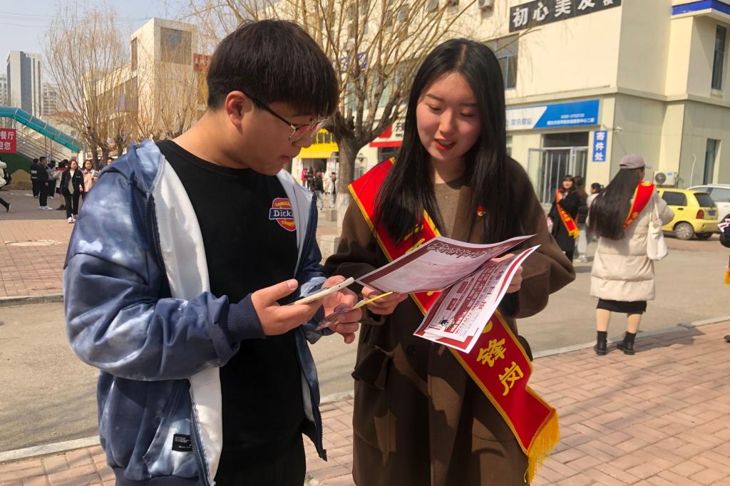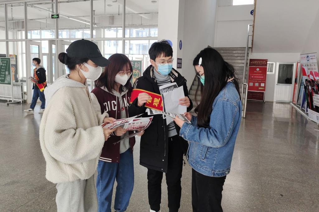 活动伊始,邓老师做学雷锋精神动员讲话,以真实案例强调本次活动的重要性,学生党员应以身作则,发挥党员的先锋模范作用,鼓励学生积极参与学校组织的法制安全教育活动,增强防范能力。紧接着,韩老师对活动进行分组安排,强调注意宣传效果,扩大影响力。党团成员依次到达各自区域,主要以发宣传单、知识宣讲的形式进行宣传。学生党员们热情主动,耐心为同学们详细介绍诈骗手段,如:“扫码送小礼物导致信息泄露”,“零利息、零首付、无担保、三分钟到账”,“非法诱惑大学生贷款”,“冒充熟人或公检法人员”,“非法集资”等诈骗的伎俩,提醒同学们要树立正确的消费观,珍惜自己的征信记录,保护好个人信息,增强防范意识,发现问题及时与辅导员老师沟通,最大限度阻断诈骗信息的深入。