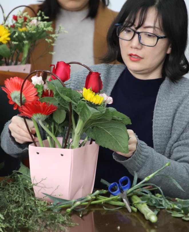 为丰富女教职工的业务文化生活,我系于3月11日下午一教四楼会议室举办“幸福如意美如花”教师插花活动。系主任辛翠香老师,副主任丛苏莉老师,团总支书记臧延云老师,以及建筑工程系老师出席此次活动。