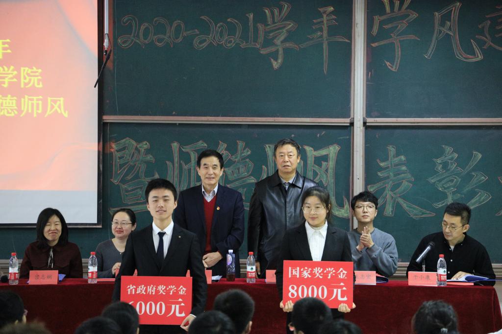 大会首先对学院第四届“最美教师”李静、“教书育人楷模”赵蕾进行了表彰。“最美教师”李静上台发言,分享了自己在教学以及班主任工作中的心得体会。随后,对国家奖学金、省政府奖学金、国家和省政府励志奖学金、祥隆奖学金、校长奖学金等学院各类奖学金以及优良学风新星班、先进班集体进行了表彰。领导老师对获奖代表一一颁奖,希望受表彰的个人和集体珍惜荣誉、再创佳绩。