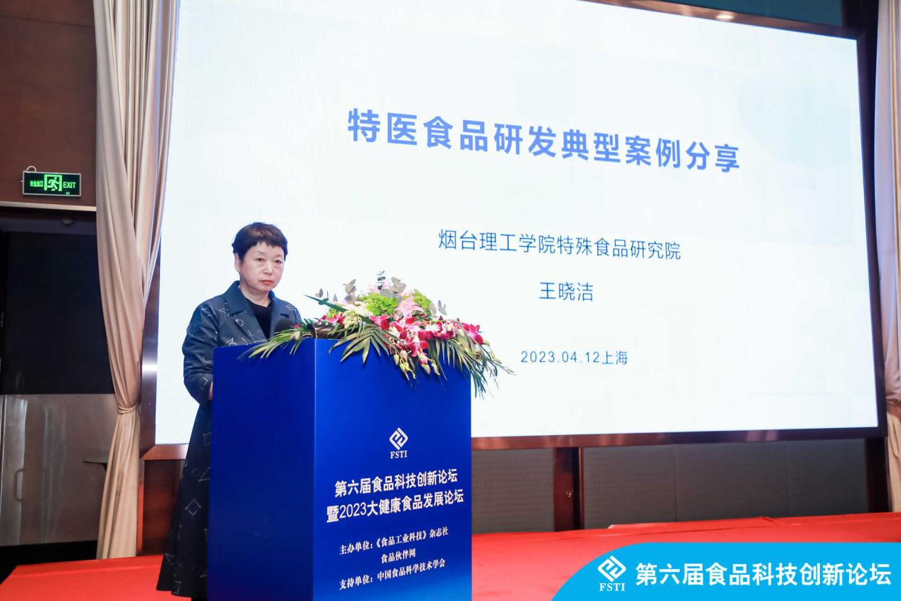 我校食品与生物工程学院教师团队王晓洁教授与孙盛千副教授作为嘉宾参加此次论坛,王晓洁教授作为特医食品产业研究院首席专家为大会做了《特医食品研发典型案例分享》的精彩专题报告,她以如何解决特医研发中出现的合理不合法的案例为切入点,从研发角度分享了如何完善特医及食品法规来规避以及解决可能出现的问题;以及通过审批下来的碳水组件-术前糖水配方分析为例讲解如何研发改善病人营养需求的特医食品。孙盛千副教授参与功能食品、特殊食品以及未来食品分论坛,就植物基蛋白功能食品的研究、特医食品发展以及天然抑菌剂的应用与专家教授展开研讨。