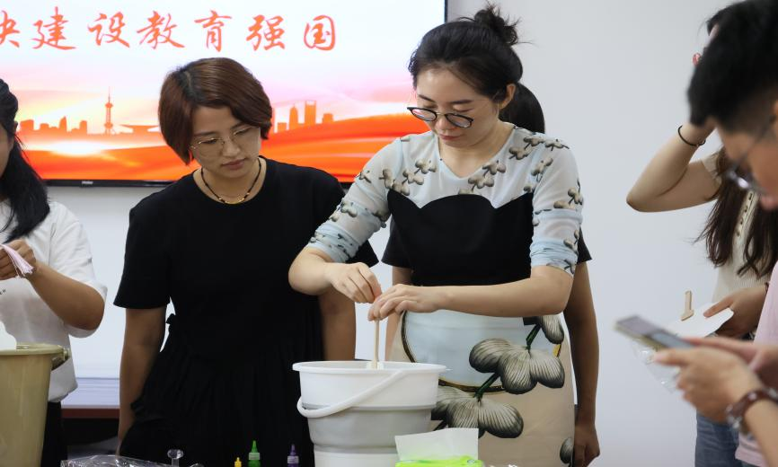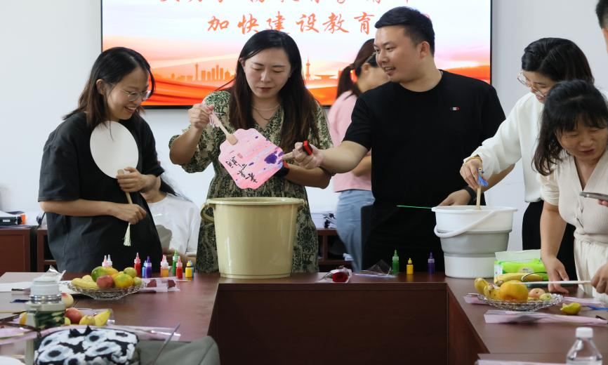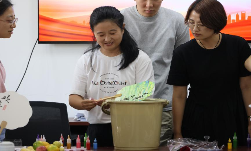 “以水为引,以漆作画”,学院特别安排了一场别开生面的漆扇制作体验活动。漆扇作为非遗文化,每把漆扇都凝聚着匠人的智慧与心血,承载着深厚的历史文化底蕴。教职工们纷纷拿起画笔,运用不同的色漆搭配,辅以点、甩、弹、划等不同手法,亲手造就出一把把独一无二的精美漆扇,每把漆扇上都寄予着老师们的心血与期待,体现出各位老师对传统文化的敬仰与尊重。漆扇文化的传承正如教育精神的传承一样,凝聚了一代代匠人和教育工作者的心血与努力。